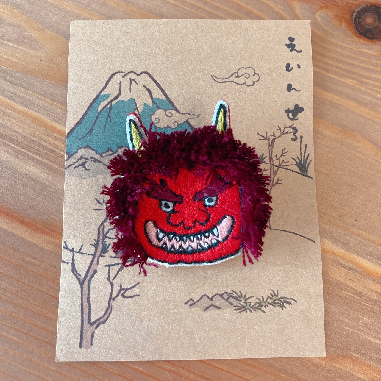 妖怪ブローチ 赤鬼 獄卒 鬼神 おばけ ブローチ 手刺繍 フエルト キャラクター 妖怪