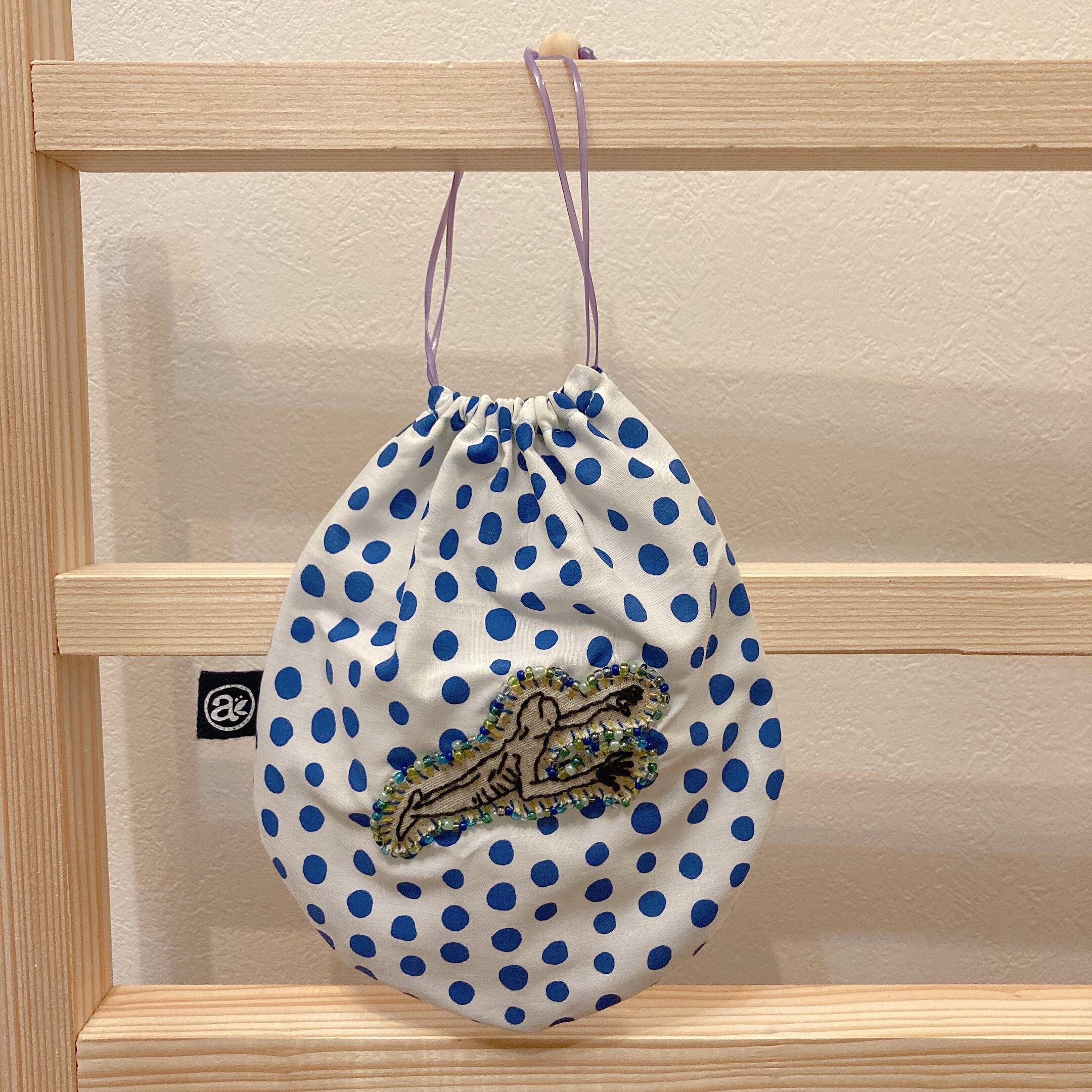 巾着は播州織の生地にネオンカラーの紐を合わせ